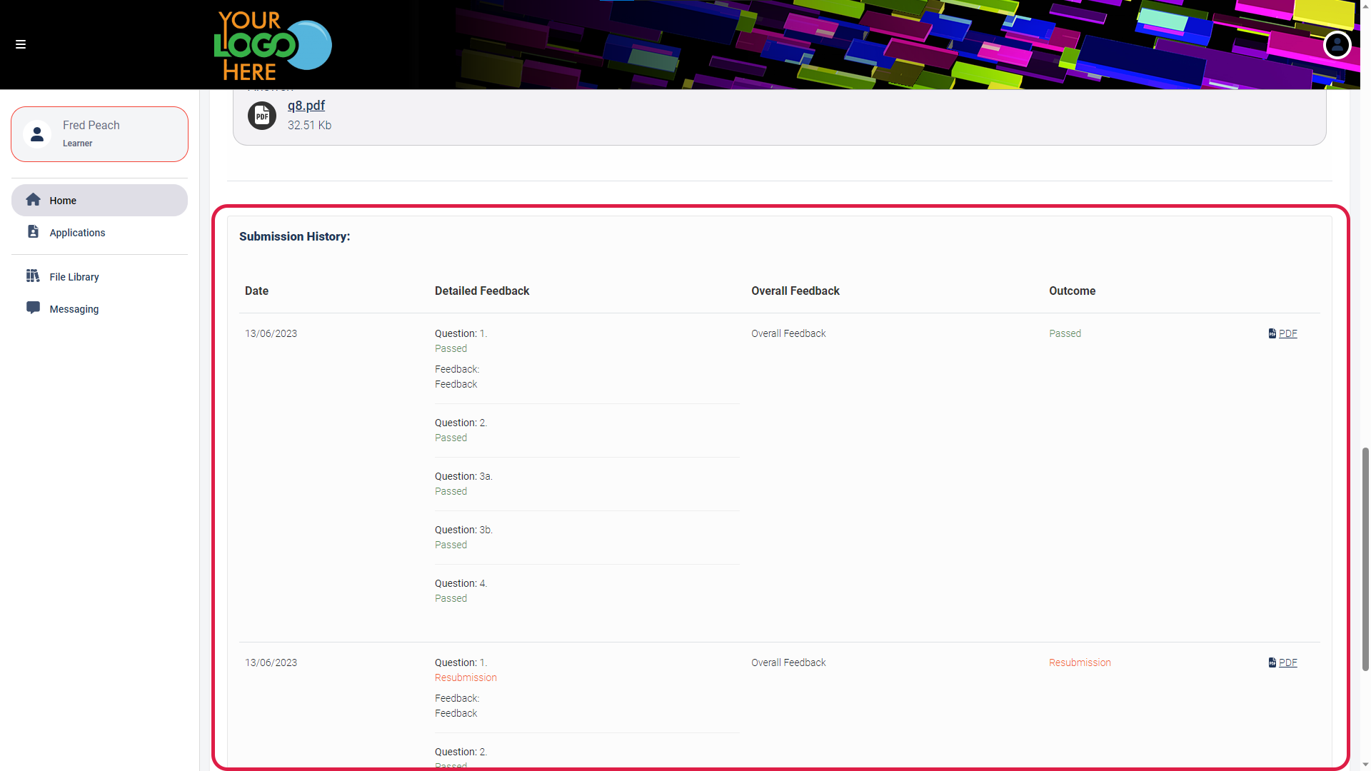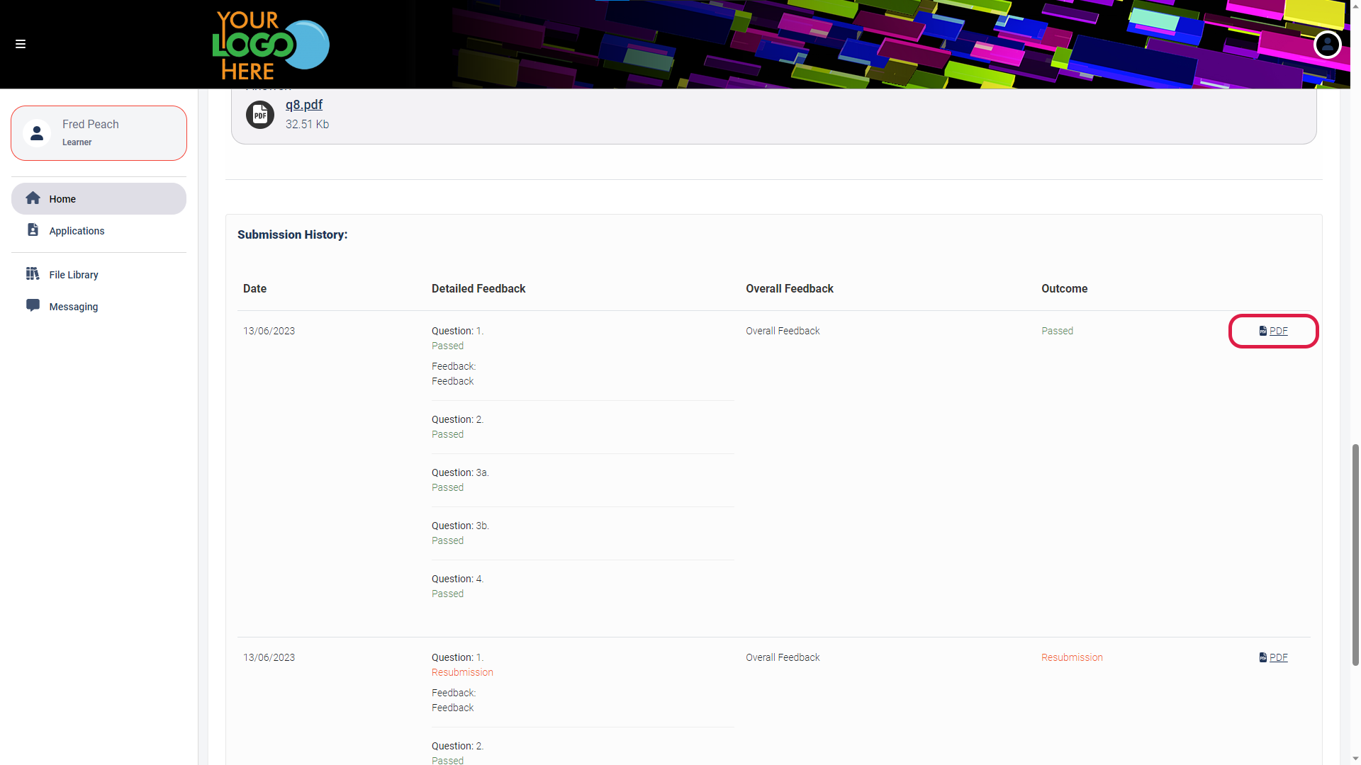 From here you can download answers and feedback from any submissions, these include all the assessment answers that were sent back by the tutor (If any).